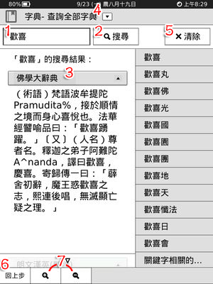 進行搜尋同時會把搜尋過的關鍵字記錄下來。當清除搜尋結果或是再次使用字典時,會列出搜尋歷史的關鍵字連結,以方便回顧詢結果。